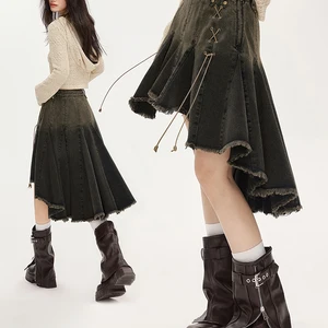 midi denim skirt, women's denim skirt, Harajuku skirt, Y2K skirt, vintage skirt, midi skirt, pleated skirt, high waist skirt, women's fashion 2025, casual denim skirts, Harajuku style, Korean skirts, jeans for women, trends 2025