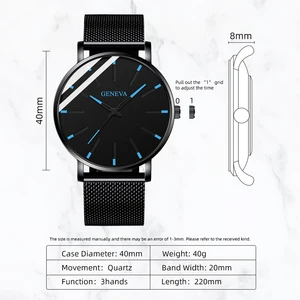 Men's minimalist ultra -thin quartz clock, stainless steel bracelet, steel mesh, top brand, business fashion